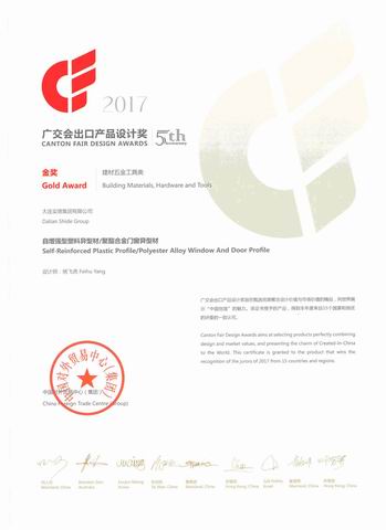 CF奖是广交会出口产品设计奖的简称,奖项的评选由境内外设计界专家、商协会专家、企业设计总监和境外采购商代表构成评委,突出专业性、国际性和市场性相结合的特色。此次,国贸公司代表大连实德科技公司申报的聚酯合金产品,经过组委会的初评、终评,最终得到评委会全体人员的一致认可,在众多参展产品中脱颖而出,获得了“金奖”称号。