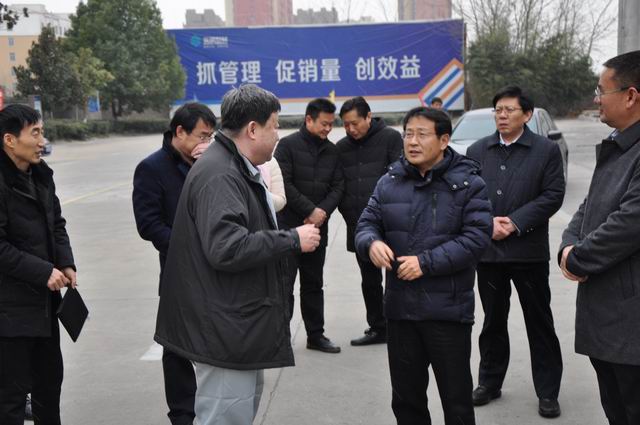2018年1月3日上午,漯河市委书记蒿慧杰,市委常委、市委秘书长孔祥智,郾城区委书记周新民,区委常委、常务副区长卢丽琴,区委常委、办公室主任何志莹等领导一行莅临漯河建材公司参观调研。漯河建材公司总经理宁斌携领导班子成员热情接待了市委、区委领导一行,并就公司情况向各级领导进行了介绍。